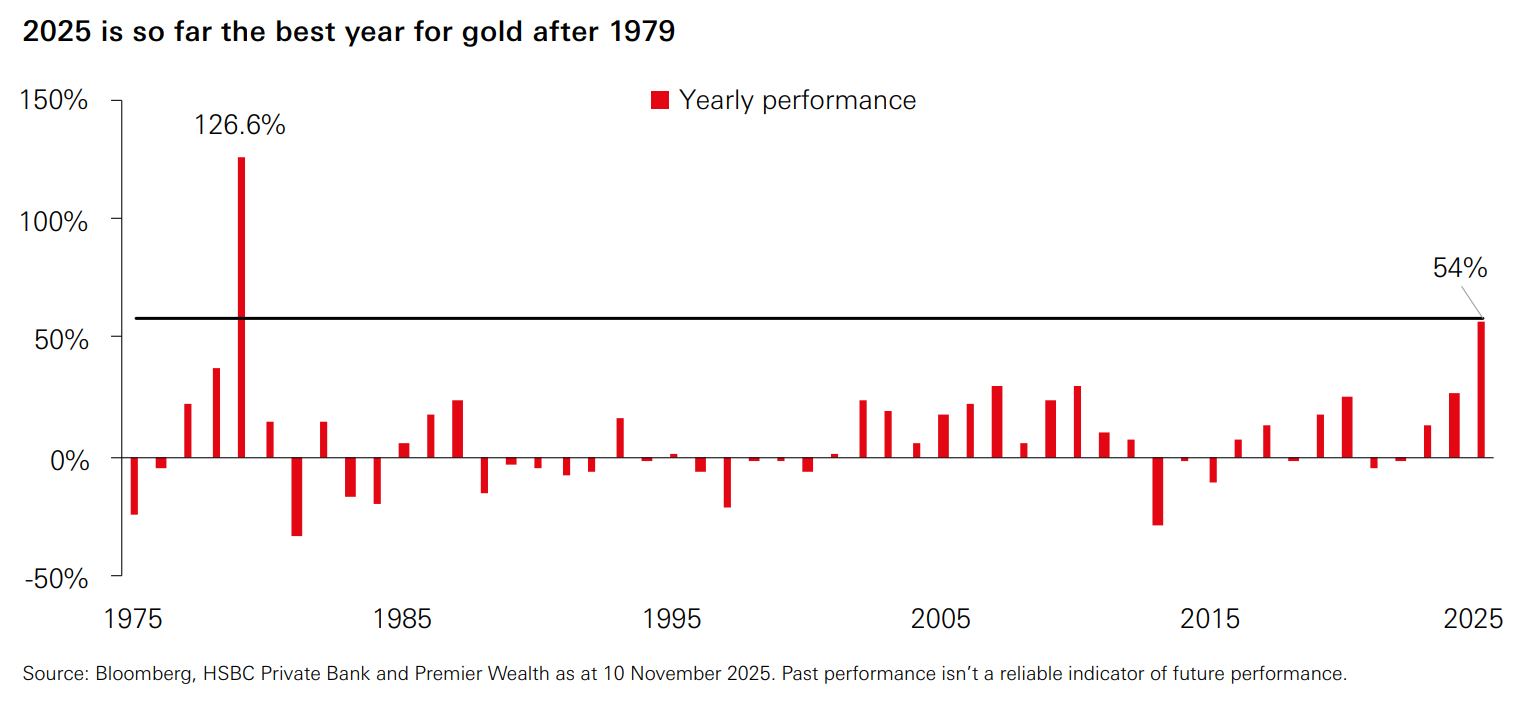 Bohn 指出,黄金今年迄今上涨约 54%,是历史上表现最为亮眼的年份之一。这一涨势主要受全球不确定性上升、通胀压力持续以及市场对美元贬值担忧的推动。