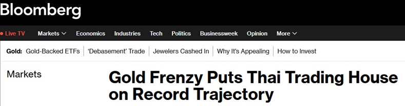 塔纳拉特说:“对泰国人来说,从小就耳濡目染:只要攒够钱就去买黄金。过去十年里,黄金每年大约能带来10%的回报。去年回报率猛增到70%,人们就一窝蜂冲进来了。完全是‘害怕错过’的心理在作祟。”