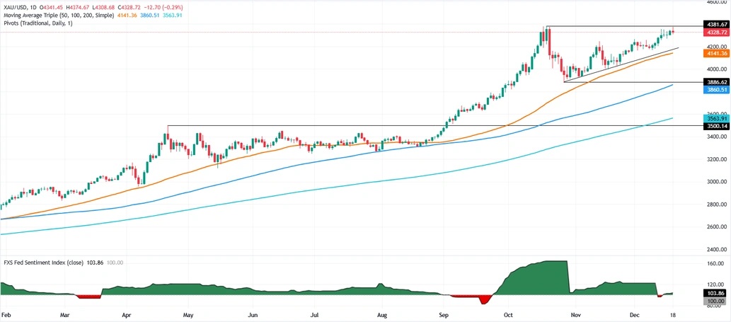 FXStreet分析师Christian Borjon Valencia指出,周四,受美国公布的通胀报告弱于预期的影响,黄金价格一度触及4374美元/盎司,逼近历史高点4381美元/盎司,随后由于交易员获利了结,黄金价格在接近两个月高位后回落。