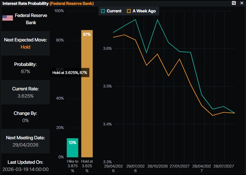 尽管SEP预计今年将降息一次,但根据Prime Market Terminal数据,货币市场并不预计美联储会在2026年降息,首次降息预计将在2027年上半年出现。