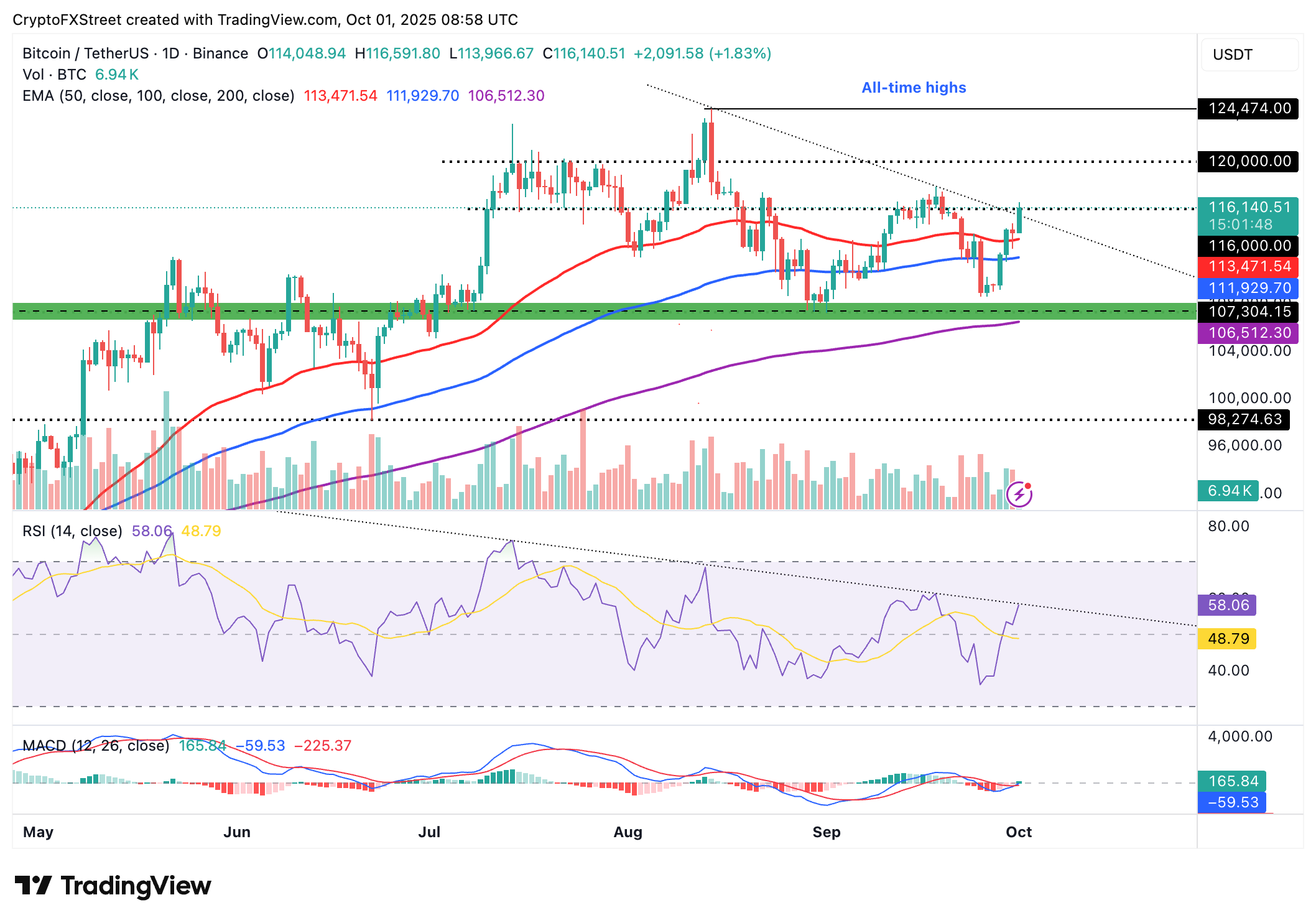 比特币(BTC)在10月以强劲的姿态开局,周三价格突破116,000美元。尽管市场普遍预期9月通常是加密货币的熊市,但BTC仍上涨了5.31%。