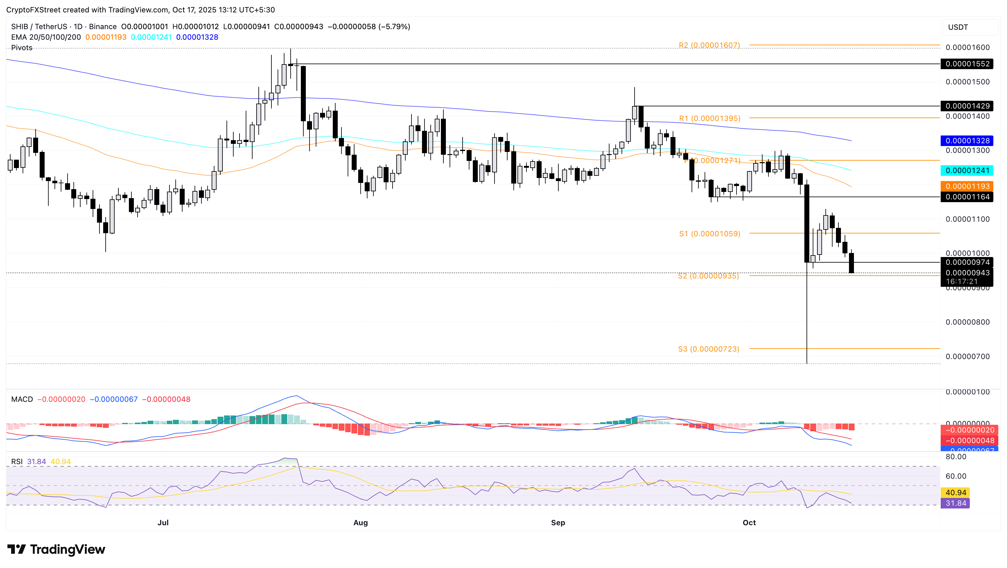 • 柴犬币在高卖压下跌破0.00001000美元的心理支撑位。