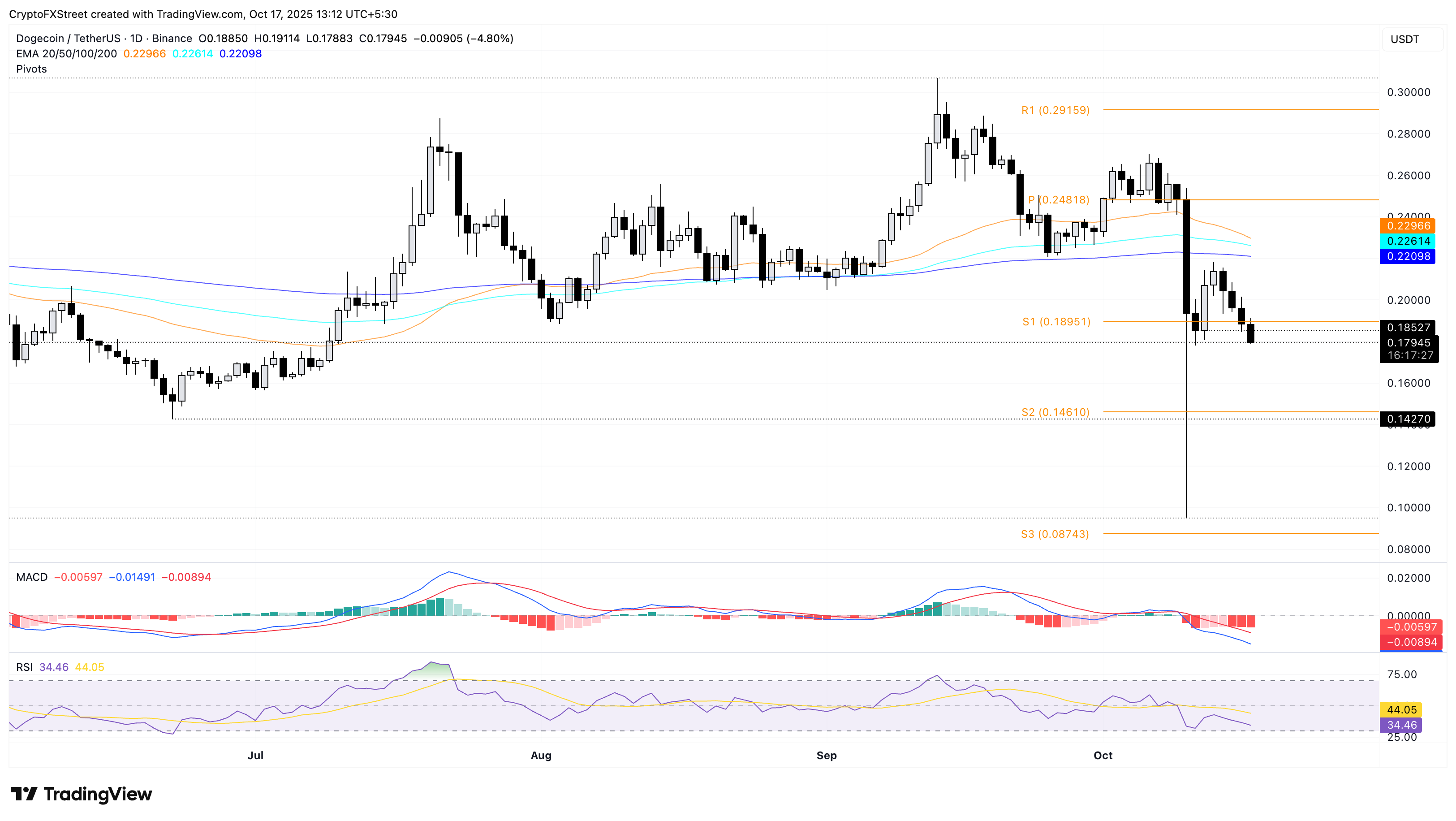 • 狗狗币跌破0.18000美元,标志着其连续第四天下跌。