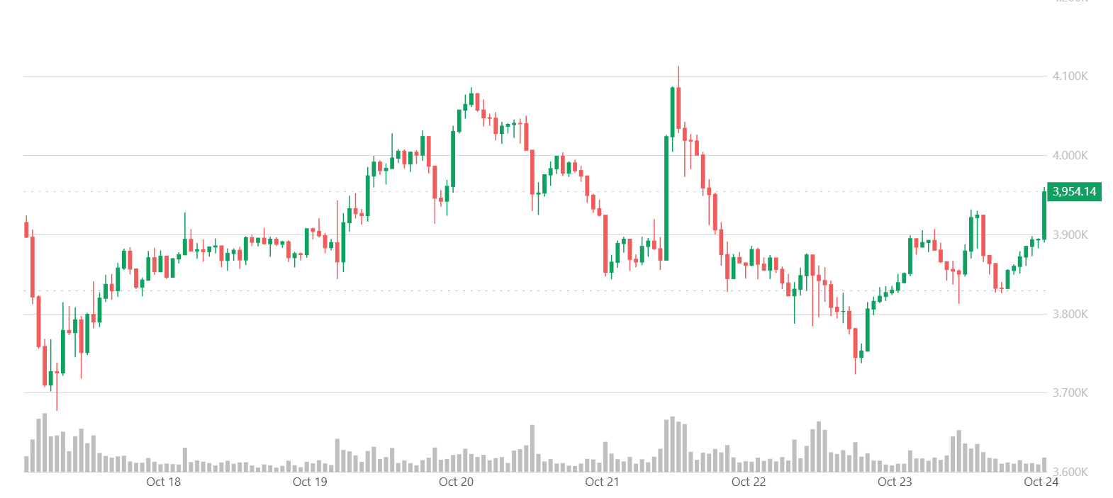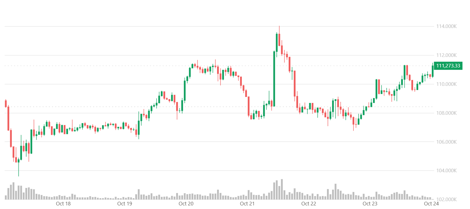FX168财经报社(亚太)讯 周五(10月24日)亚洲交易时段,比特币延续昨日强势反弹势头,目前交投在11万美元上方,以太坊徘徊在3,950美元附近,市场猜测其即将迎来重大突破。