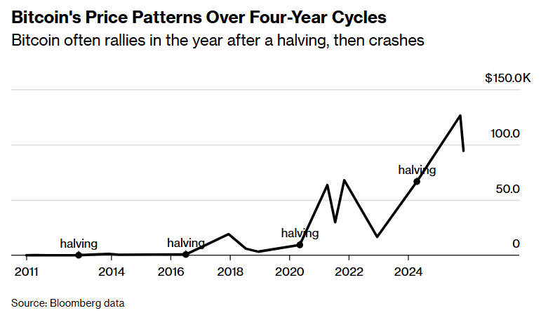 “在这个阶段,可能是交易员对历史重演的恐惧让四年周期成真,”彭博 ETF 分析师 Eric Balchunas 表示。但他也补充:“典型节奏可能被扰乱,甚至永久性改变。”