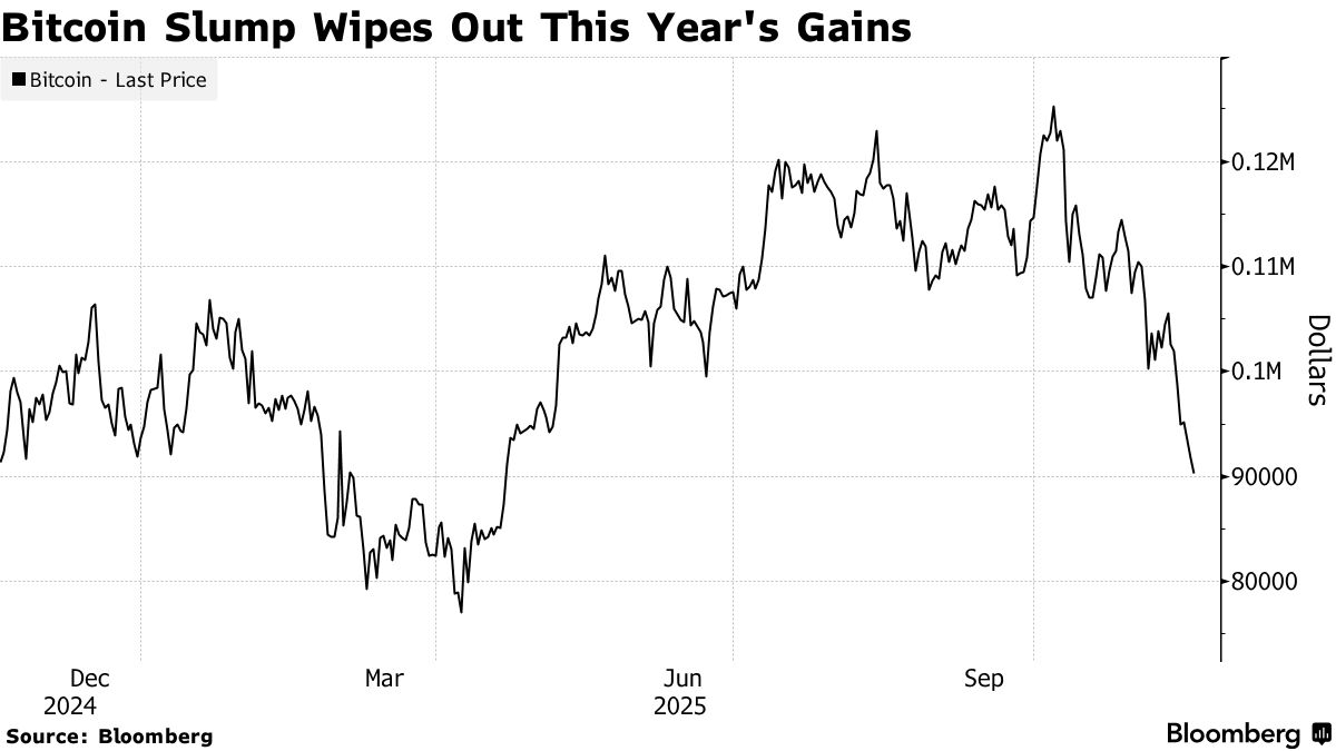 风险警报全面拉响!比特币崩溃失守9万大关,熊市级别的恐慌来了