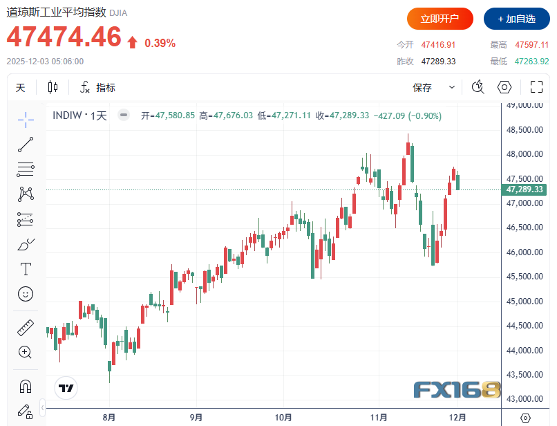 美市尾盘,道琼斯工业平均指数上涨185.13点,涨幅0.39%,收于47,474.46点;标普500指数上涨0.25%,报6,829.37点;纳斯达克综合指数上涨0.59%,收在23,413.67点。