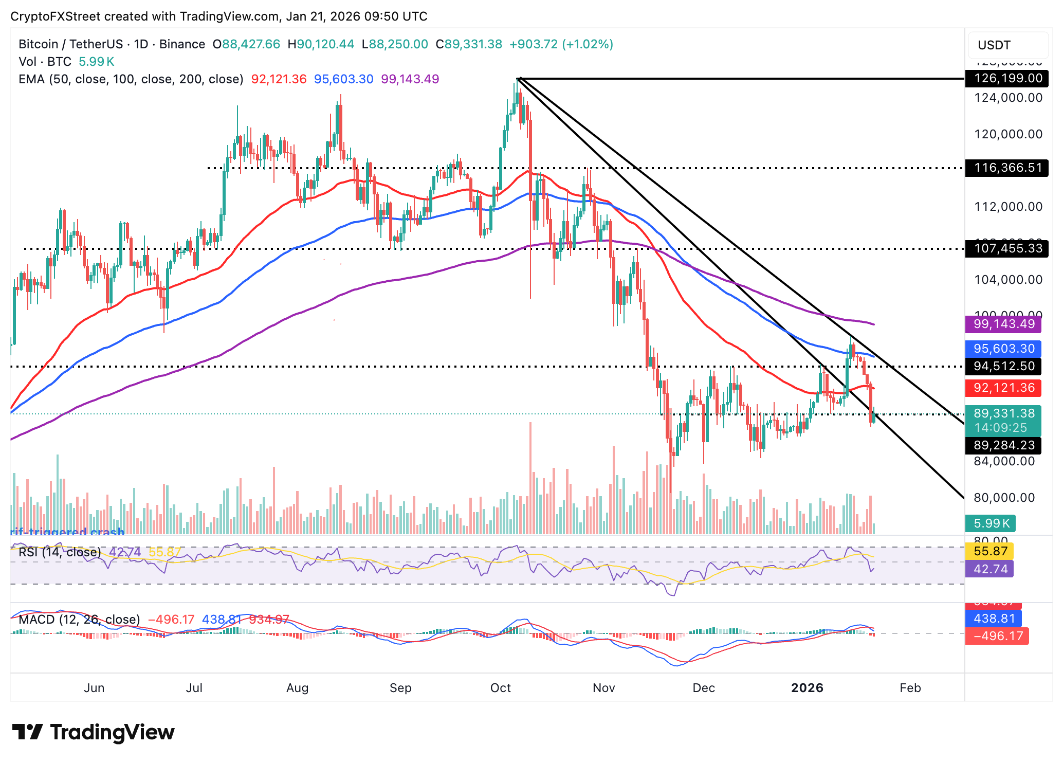 比特币(BTC)在连续六天下跌后表现出稳定性,截至周三交易价格在89,000美元以上。更广泛的加密货币市场充满了地缘政治紧张局势,伴随着宏观经济风险和机构及零售兴趣的下降。