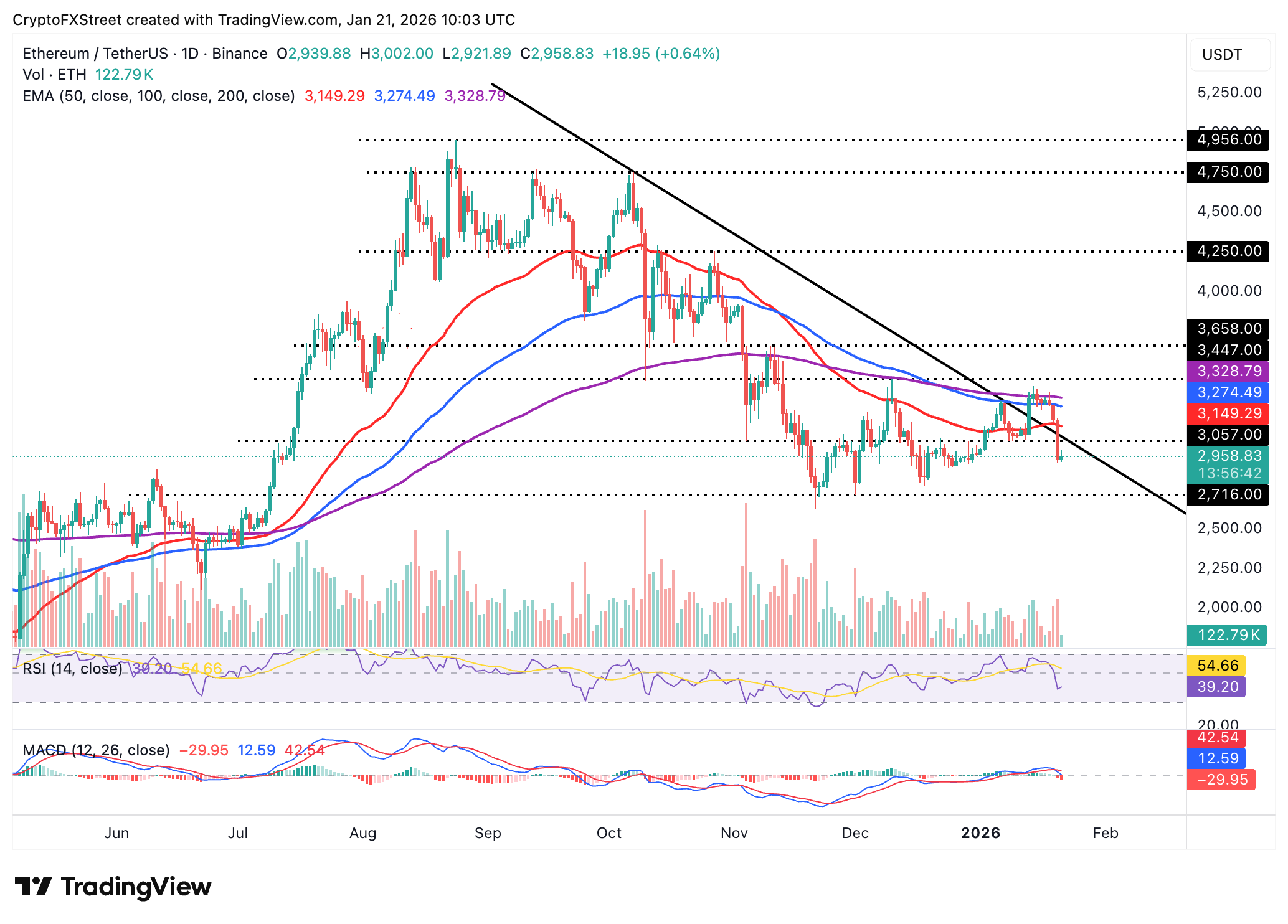 展望未来,若突破3000美元,可能会加速向50日指数移动平均线(EMA)3149美元、100日EMA3274美元和200日EMA3329美元的上行趋势。然而,如果价格收盘低于2900美元并跌至测试12月低点2716美元,以太坊可能会延续其下行趋势。