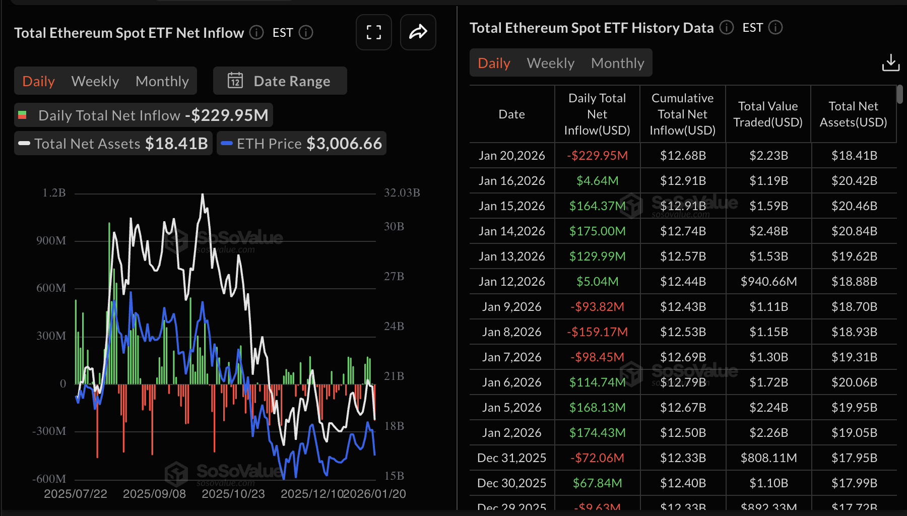 以太坊现货ETF周二也出现资金外流,投资者提款近2.3亿美元。这一外流是在上周连续五天流入之后发生的。