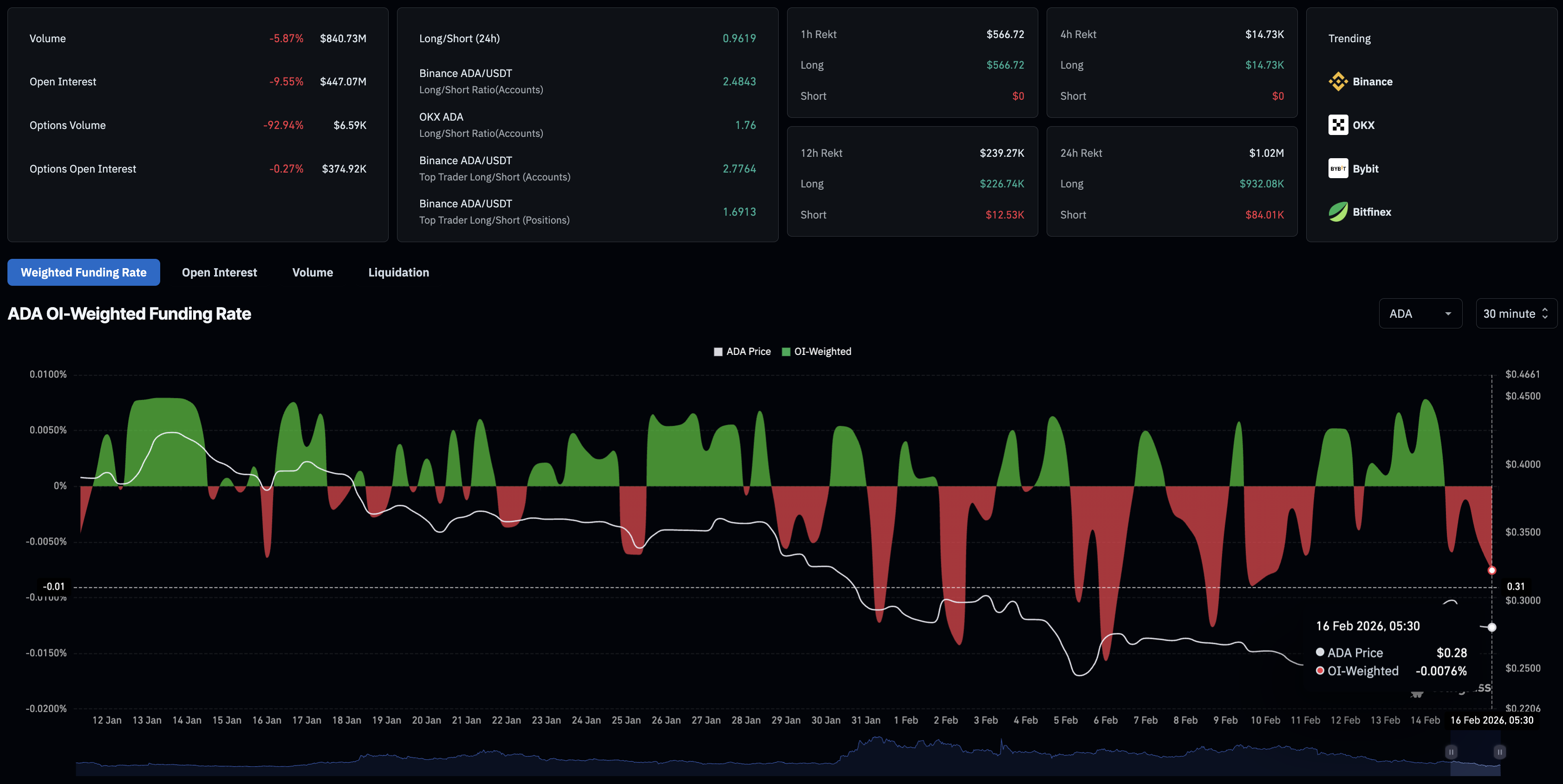 ADA衍生品数据。来源:CoinGlass