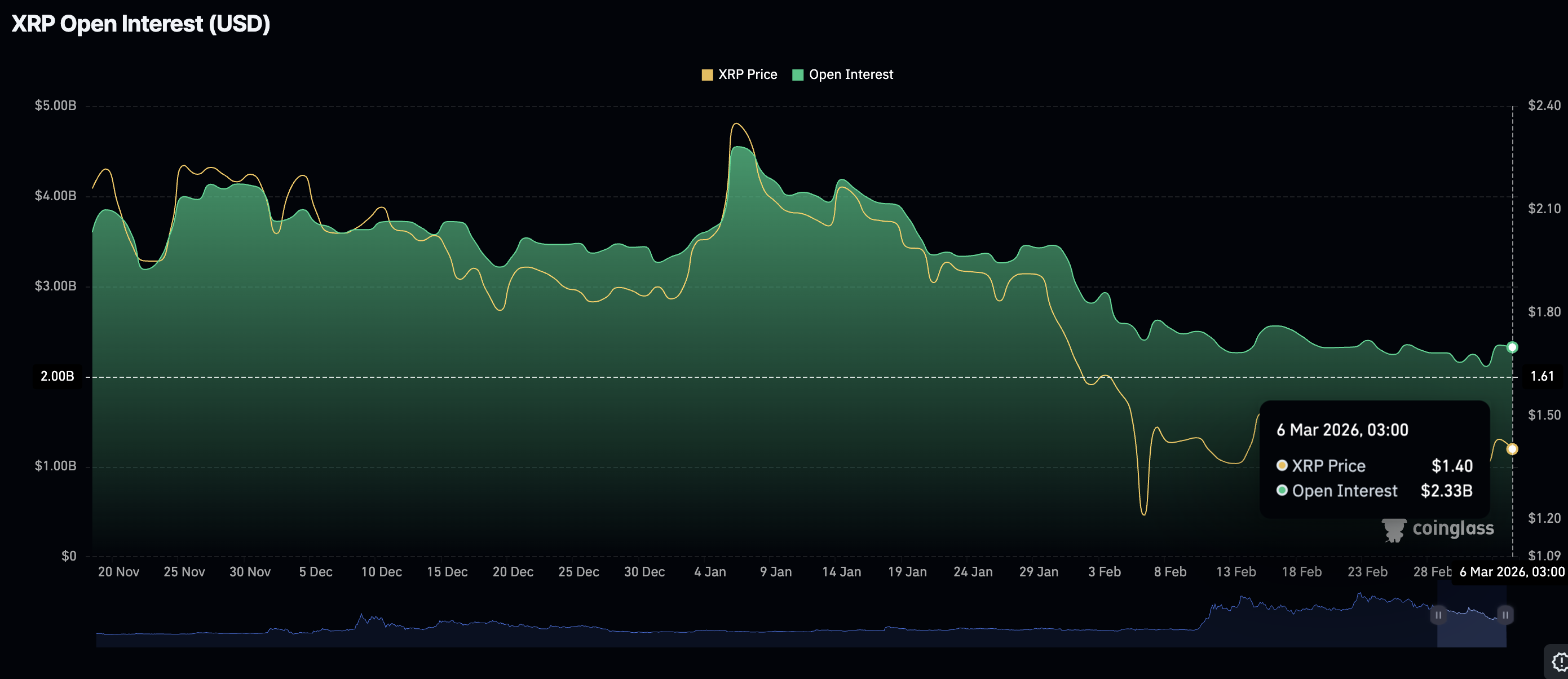 • XRP在中东战争的背景下,微妙地保持在1.40美元支撑位之上,整体加密市场依然谨慎。