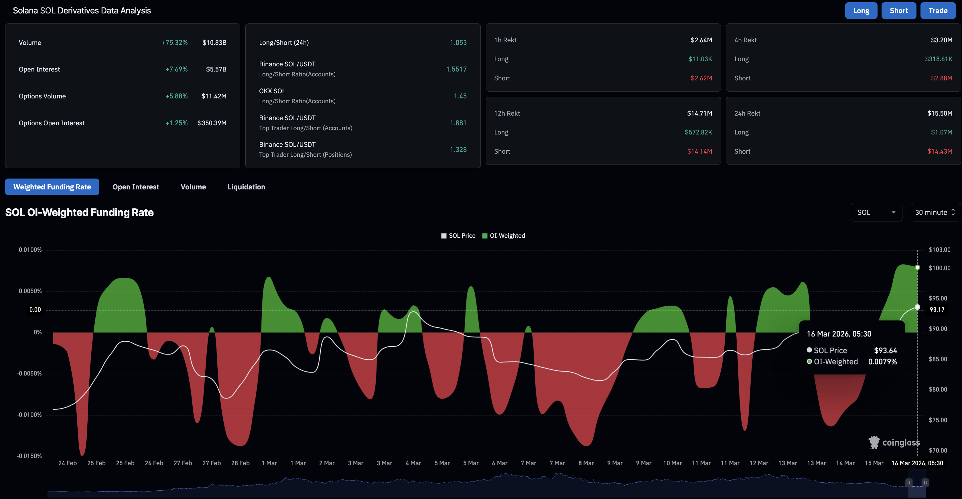 在资本流入索拉纳期货市场的背景下,清算数据显示看跌头寸被清除。索拉纳期货在过去24小时内录得1550万美元的清算,其中1443万美元为空头清算,反映出主要看跌头寸的平仓。
