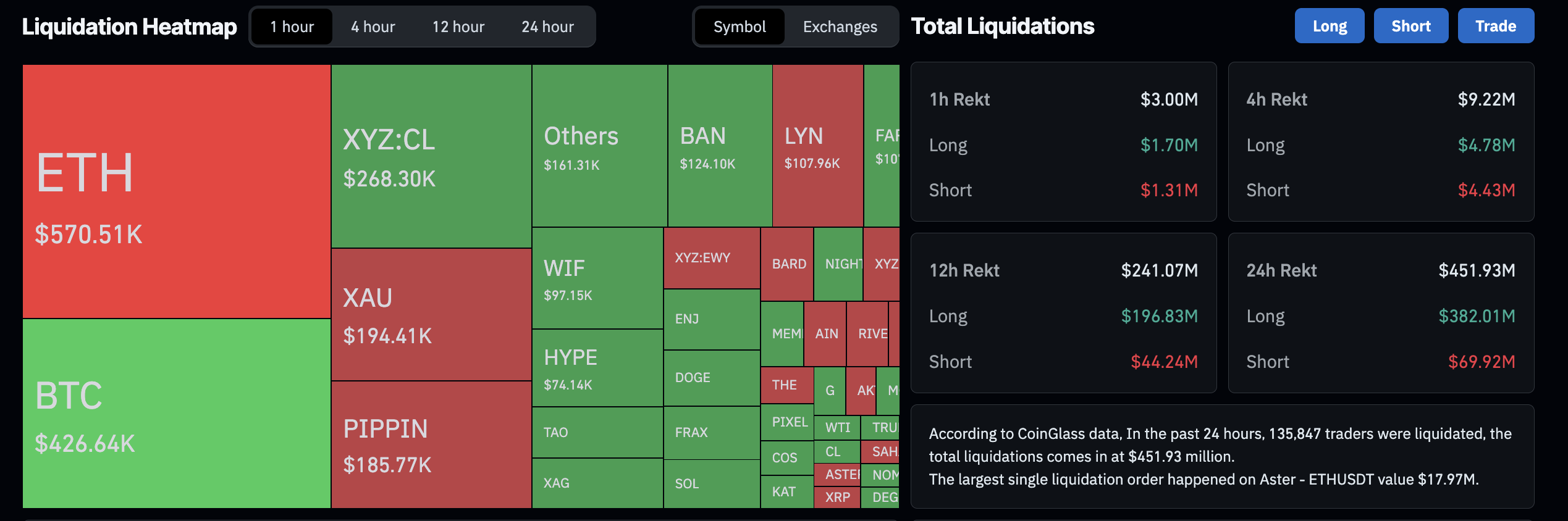 由于降息延迟,加密货币市场在过去24小时内记录了巨额清算,总计4.5193亿美元,主要是由于3.8201亿美元的多头清算,反映出新的下行压力。