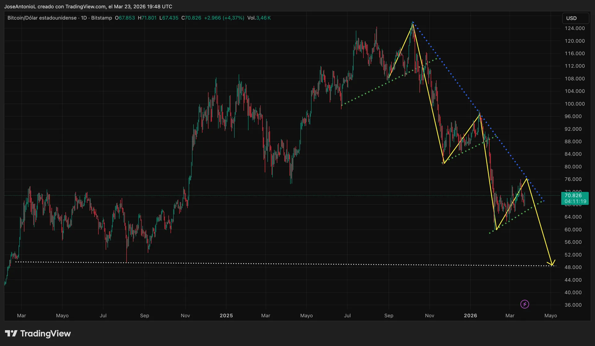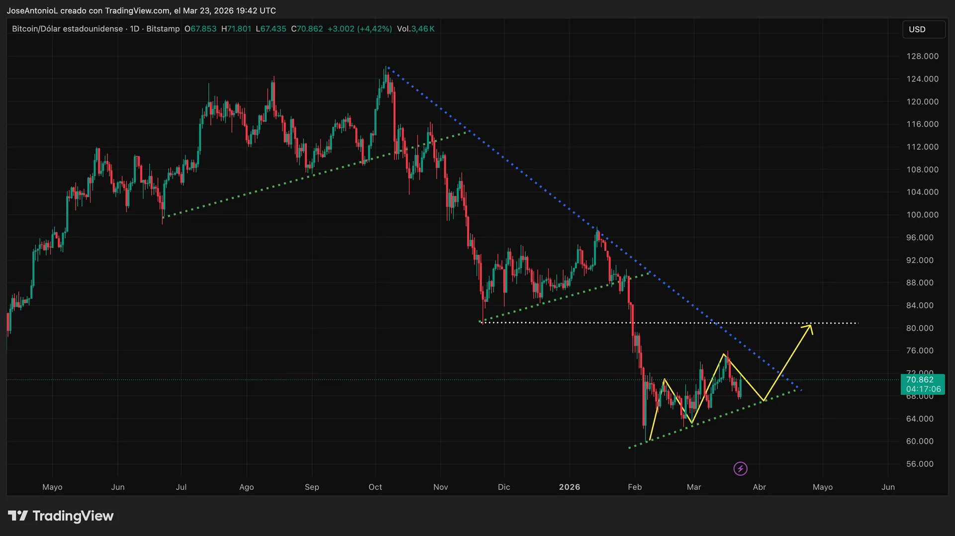 【比特日报】鲍威尔一句话令降息希望破灭!比特币暴跌下探7万支撑,技术面这一信号危险
