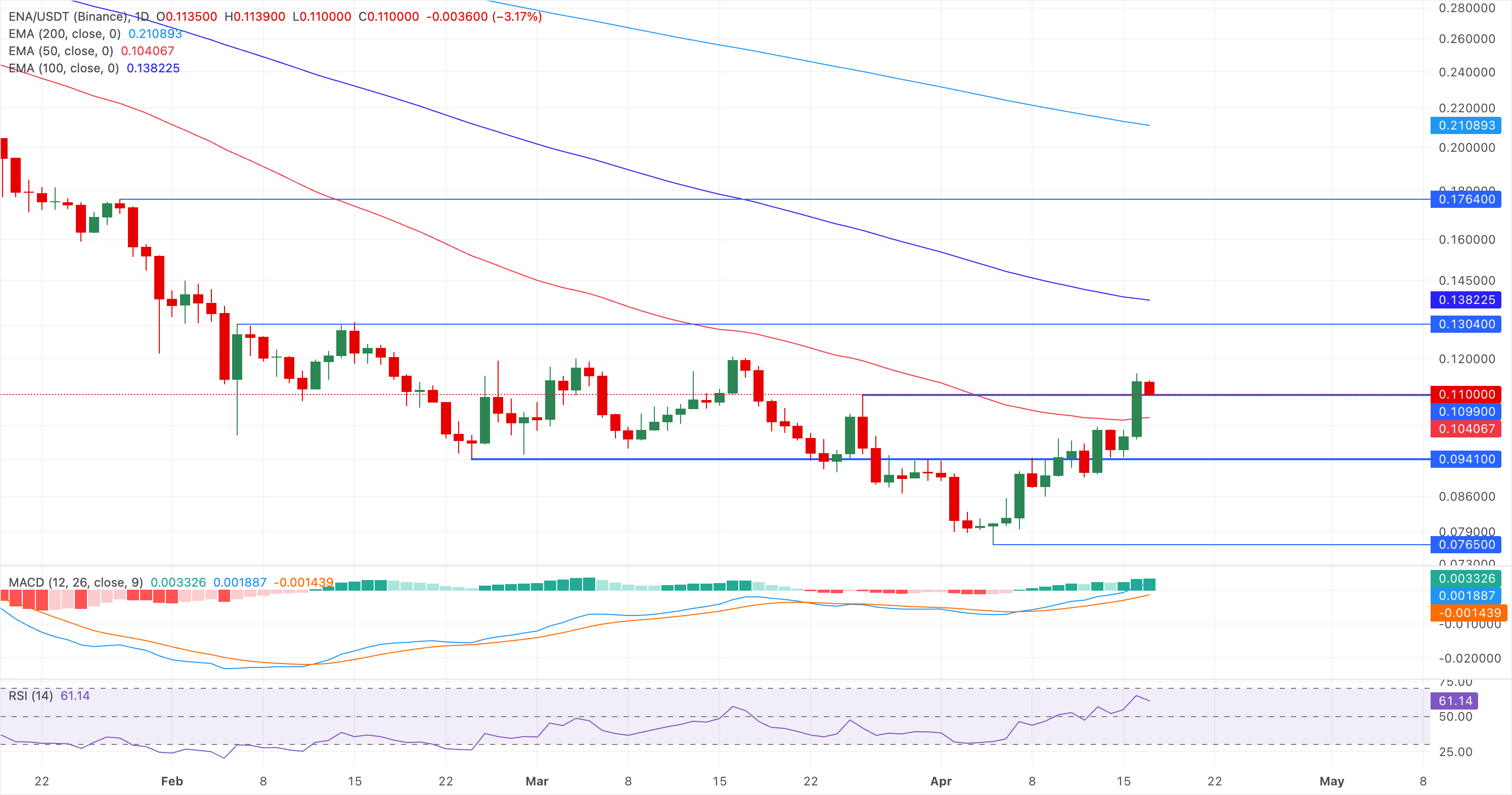 最后,Ethena显示稳步回升,突破50日EMA 0.1041美元,现为初步动态支撑。尽管如此,ENA仍远低于100日和200日EMA,分别为0.1382美元和0.2109美元,尽管近期反弹,整体偏向看跌。