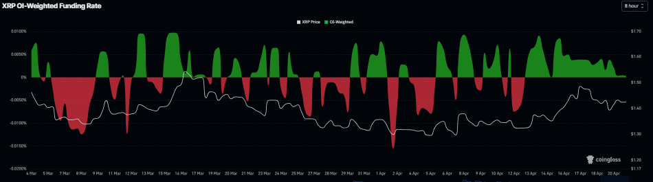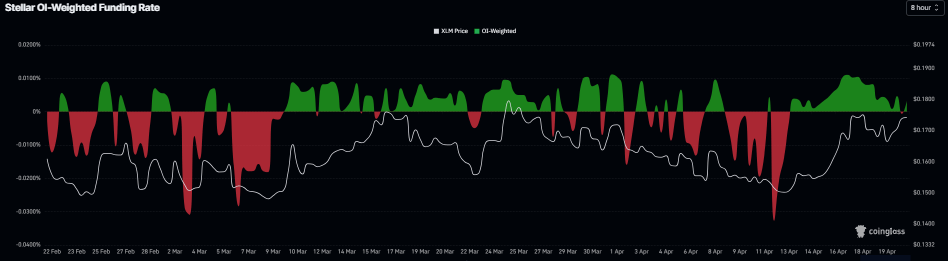 在衍生品方面,两种山寨币的资金费率均呈看涨态势。CoinGlass的未平仓合约加权资金费率显示,XRP上周转为正值并持续保持,周二为0.0003%。与此同时,Stellar周一转为正值,周二为0.0032%。这些正值费率表明多头支付空头,市场情绪看涨。