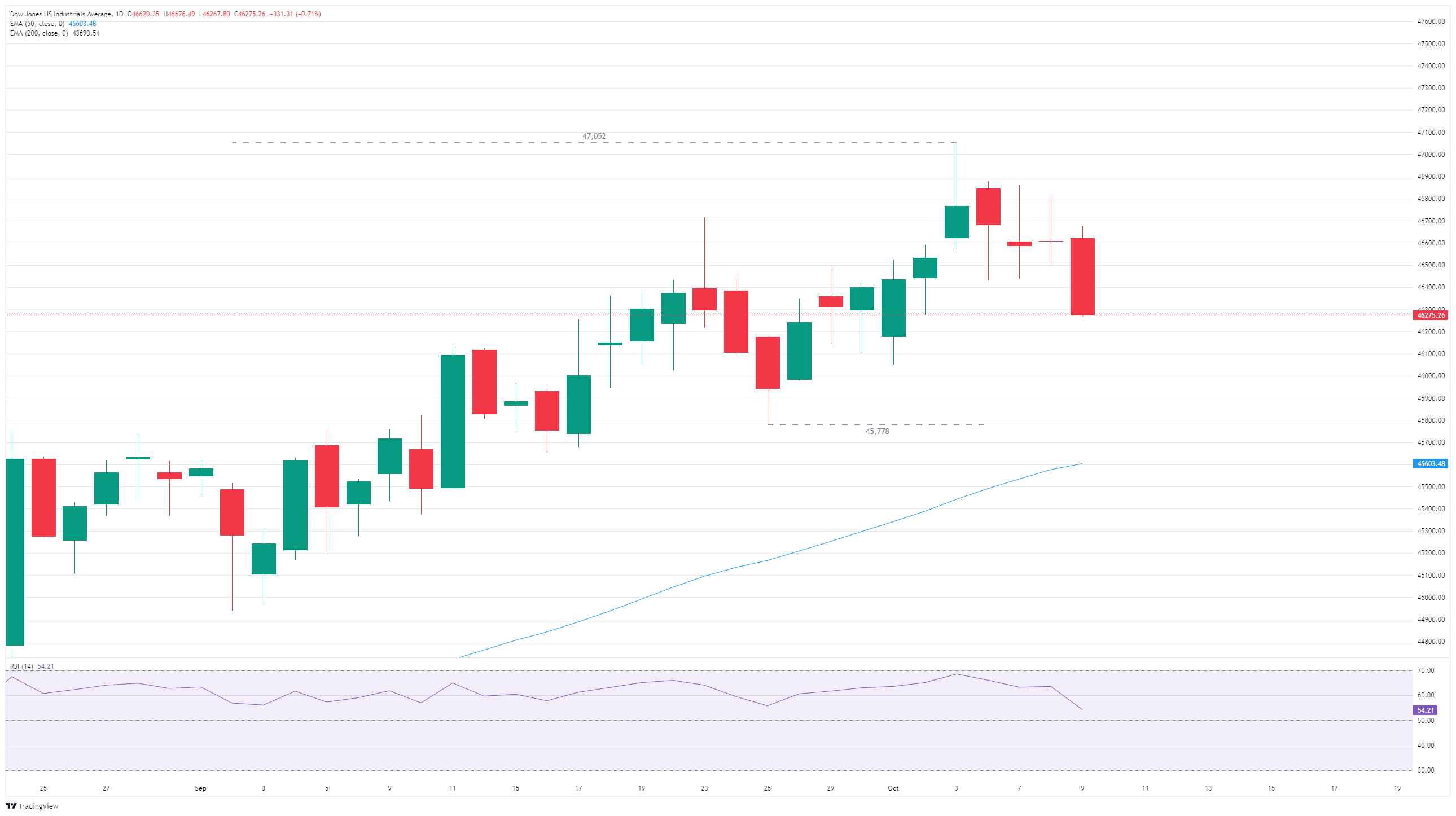 道琼斯工业平均指数(DJIA)在经历了一周的徘徊后,周四大幅下跌。道指在美国市场开盘时接近46,600点后,迅速跌入46,300区域,撼动了主要股指,写作时下跌约300点。
