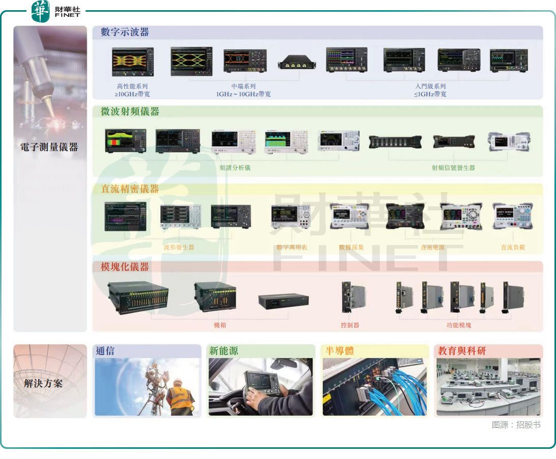 业务方面,普源精电是中国领先的电子测量仪器公司,设计、开发、制造并交付全面电子测量仪器及解决方案,目前已建立以两大支柱为基础的全面电子测量组合:(1)以核心技术驱动的产品矩阵,涵盖数字示波器、微波射频(“RF”)仪器、直流(“DC”)精密仪器及模块化仪器;(2)多场景解决方案套件,主要服务通信、新能源、半导体、教育与科研等高增长行业。