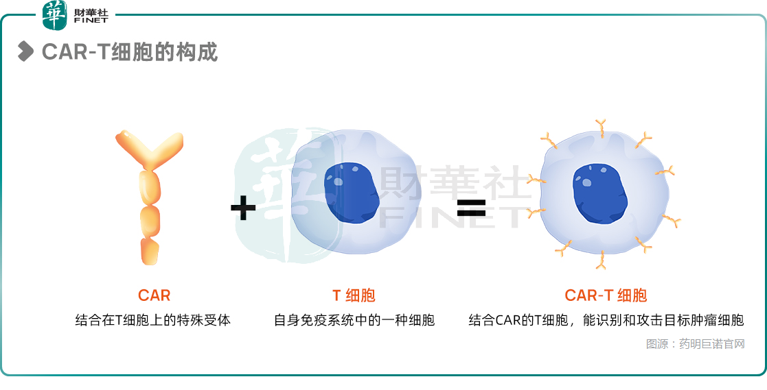 CAR-T是经基因改造以产生人工抗原受体的T细胞,从而使T细胞拥有靶向特定蛋白质的新能力。经基因改造后的T细胞表面存在称为嵌合抗原受体(CAR)的受体。CAR可与肿瘤细胞表面上的抗原结合,以触发细胞内信号传导,从而激活T细胞以消除肿瘤细胞。