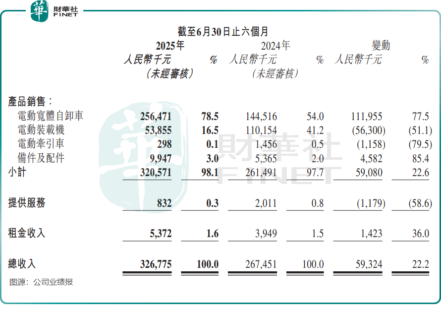电动装载机曾在2022年为博雷顿贡献51%的收入,但自2024年起增长乏力,2025年上半年收入同比腰斩,降至5385.5万元。