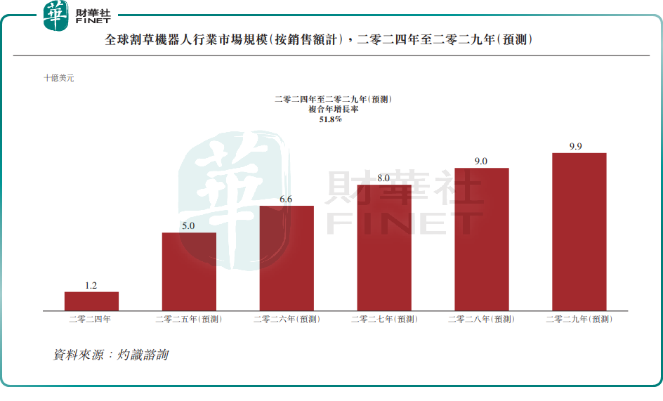 中坚科技所切入的机器人赛道正处于高速成长期。据灼识咨询数据,全球智能割草机器人市场规模预计将从2024年的12亿美元增长至2029年的99亿美元,年复合增长率达51.8%;同期全球智能机器人市场规模年复合增长率预计更高达118.9%。