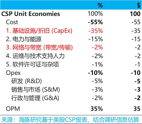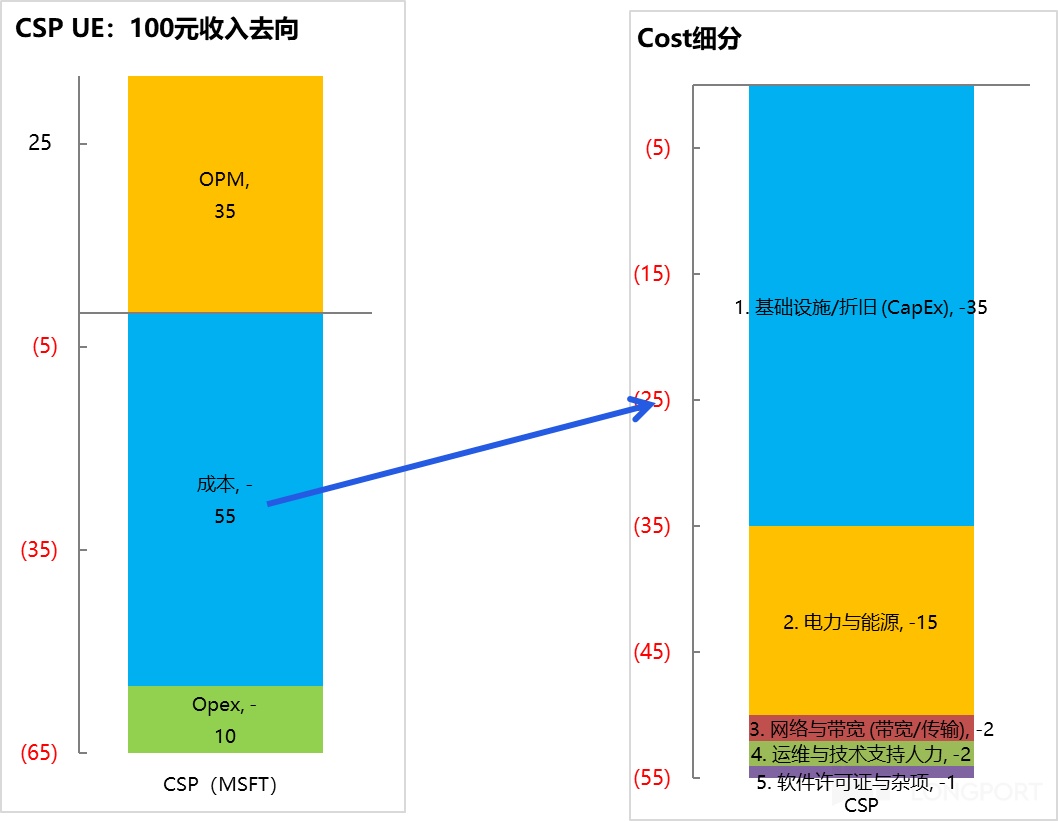A. 云服务商们的经济账:100 元收入分布——55 元成本、10 元运营开支,35 元利润;