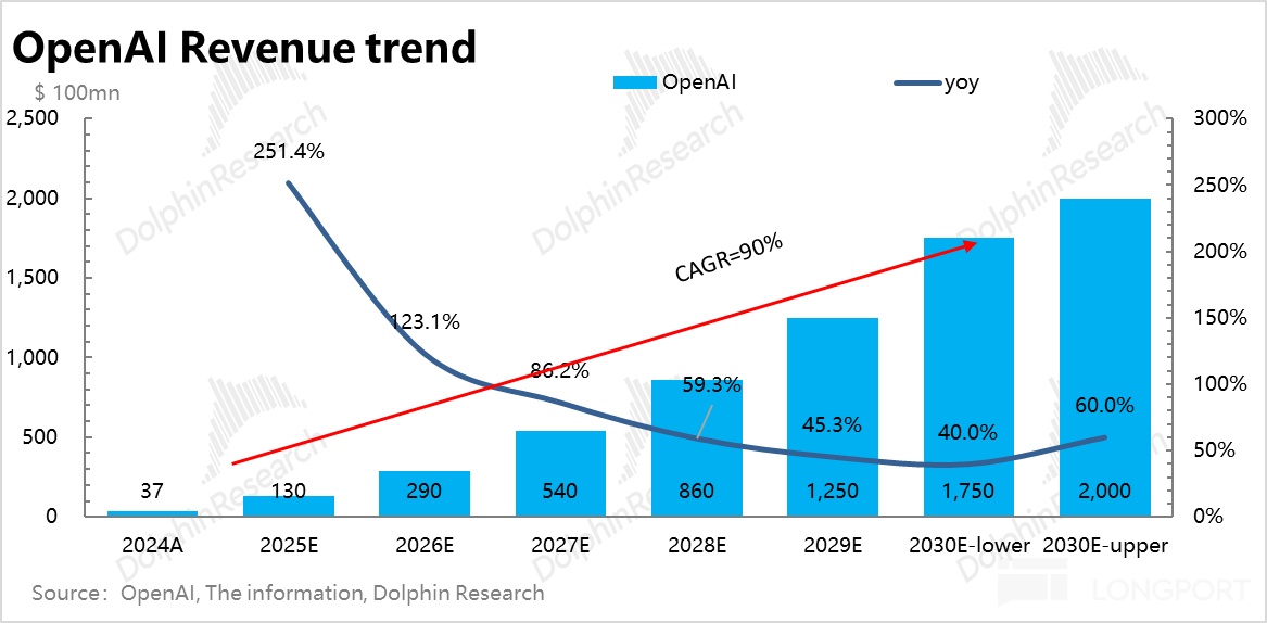 收入高速增长:根据媒体披露,按 OpenAI 目前的月收入推进速度, 2025 年按月预计年底年化200 亿美金,25 全年 130 亿美金,同比增长 250%;