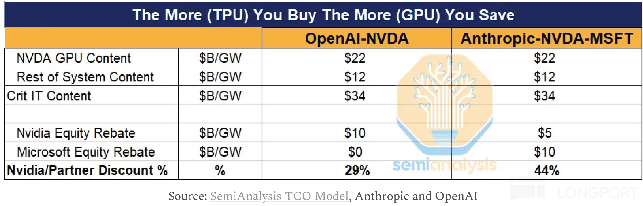 这样的案例影响下,下游客户通过威胁使用 TPU(甚至都未必是真部署),就能迫使英伟达为锁死下游客户订单,通过融资担保、股权融资、剩余产能兜底等方式来间接降价,本质上就是客户把部署 GPU 的成本给拉了下来。