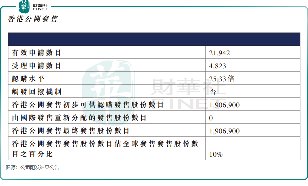 从认购情况看,公司香港公开发售部分一手中签率为4.32%,处于偏低水平。具体而言,甲组(小散)有效申请数目为21,743手,获接纳申请人总数为4,624人;乙组(大额)有效申请数目为199手,获接纳申请人总数为199人,无超额申请。这些数据反映出市场对这只新股的谨慎态度。