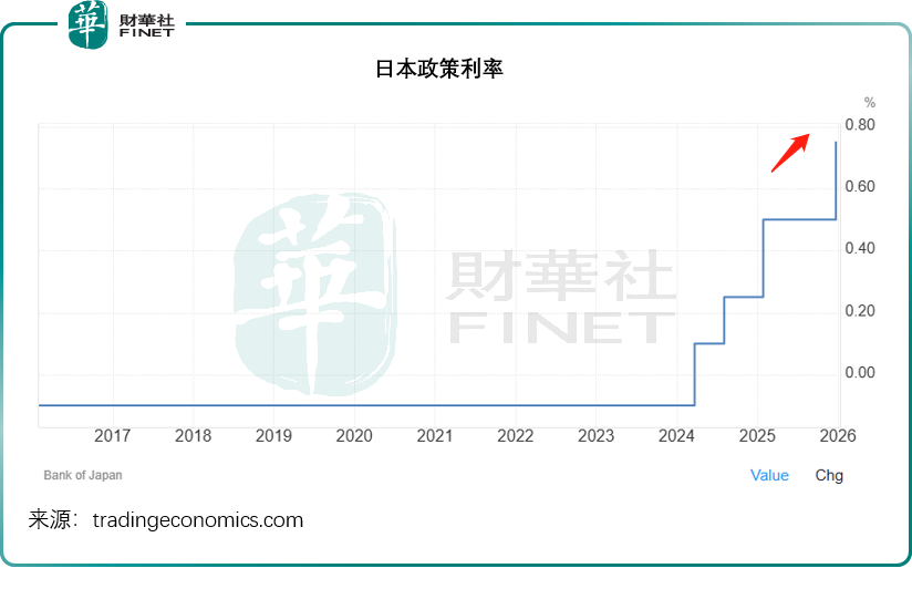 日本央行在12月19日的货币政策决策会议上,一如市场预期再次加息,将政策利率——无担保隔夜拆借利率的引导目标上调25个基点,至0.75%,也标志着日本政策利率回到自1995年以来30年最高水平。