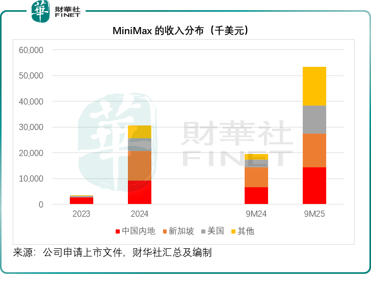 智谱的收入大部分来自中国内地,2024年下半年开始拓展更多地域市场,包括东南亚和其他地区,但内地仍是主要收入来源,2025年上半年,中国内地贡献的收入占了其总收入的88.39%;而MiniMax的收入分布则十分广泛,2025年前三季度,内地仅占其总收入的26.95%,其收入来自新加坡、美国等,见下图。