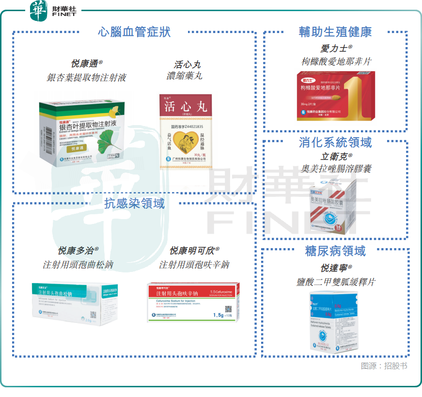 在产品方面,悦康药业已经有发展成熟的商业产品组合,包括超过80种产品。其中,核心产品悦康通®(银杏叶提取物注射液)在中国的医院覆盖面广泛,包括三级及二级医院,用于管理脑血管和外周血管障碍;爱力士®(枸橼酸爱地那非片)在中国的泌尿科和男科环境中用于处方,治疗男性勃起功能障碍;立卫克®(奥美拉唑肠溶胶囊)和悦达宁®(盐酸二甲双胍缓释片)等其他关键产品进一步扩大了公司在主要治疗领域的覆盖面。悦康药业亦销售具有广泛标示适应症的头孢菌素抗生素。