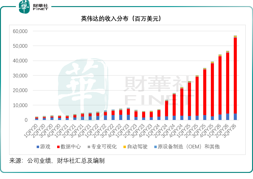 从英伟达的收入分布来看,当前数据中心(以最尖端的AI芯片为主)是其贡献最大的业务部门,而机器人和自动驾驶则分类在“自动驾驶”部门之中,我们根据该公司的财务数据估算,截至2025年10月26日止12个月的收入仅为23.15亿美元,占其总收入的1.24%。可以预见,随着黄仁勋自动驾驶服务生态的全面落地,该部门有望承接数据中心分部,成为增长最快的部门,见下图。