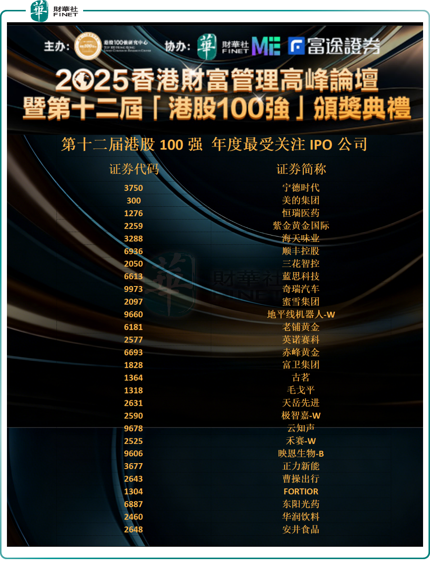 第十二届港股100强“年度最受关注IPO公司” :新经济重塑港股投资版图