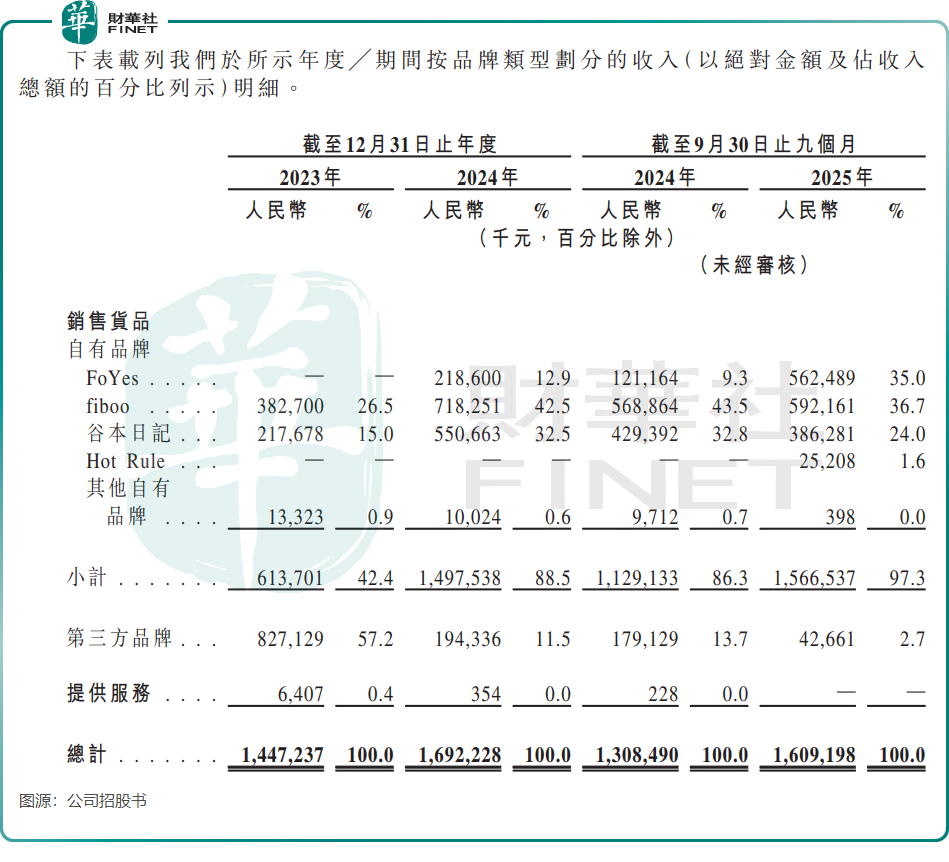 回溯其发展轨迹,公司并非天生的品牌玩家,早期以第三方品牌代理为生,直到近年才完成从“经销商”到“品牌商”的关键转型。招股书数据显示,公司自有品牌收入占比从2023年的42.4%飙升至2025年前三季的97.3%。伴随转型而来的是毛利率的迅猛提升,从2023年的44.4%增至2025年前三季度的59.5%,为利润的增长打开了空间。