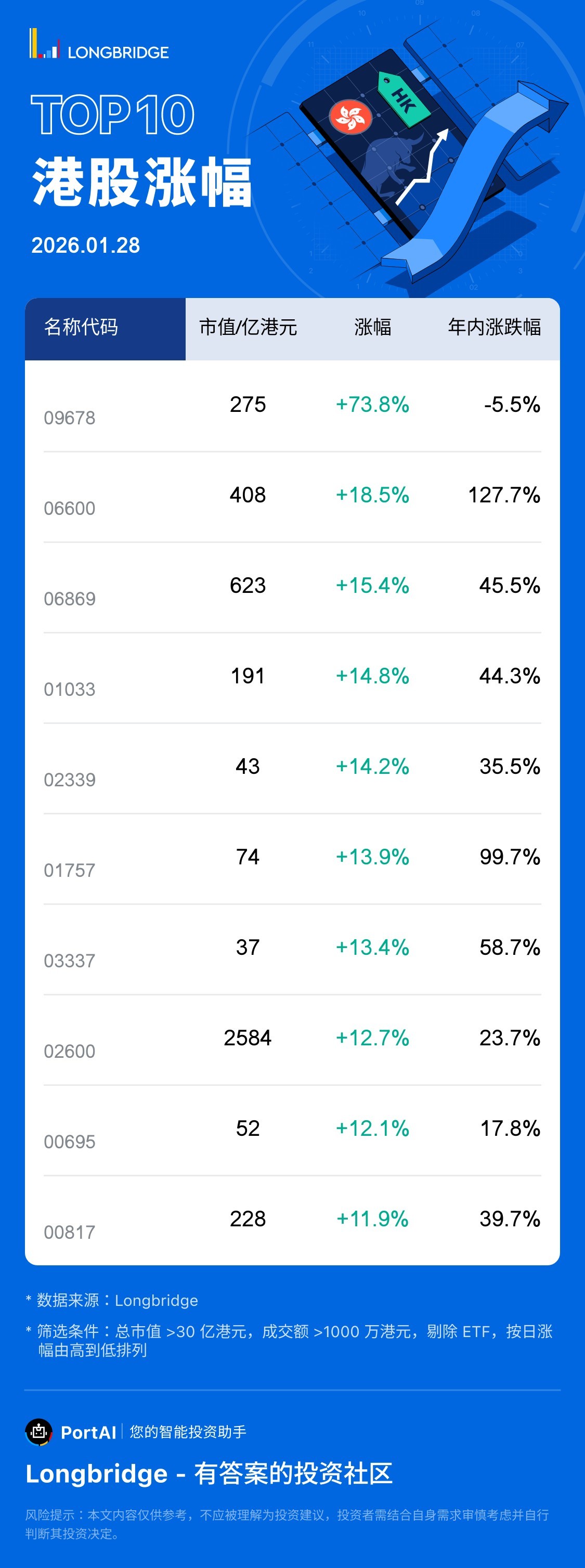 云知声 (09678) 涨 73.79%,成交额 24.3 亿港元,年内累计跌 5.5%。