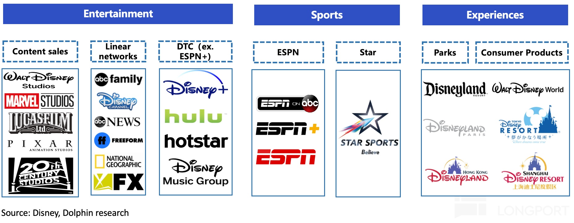 作为近百年的娱乐王国,迪士尼的业务架构也经历了多次调整,海豚君在《迪士尼:百岁公主的 “驻颜术”》中有过详细介绍。
