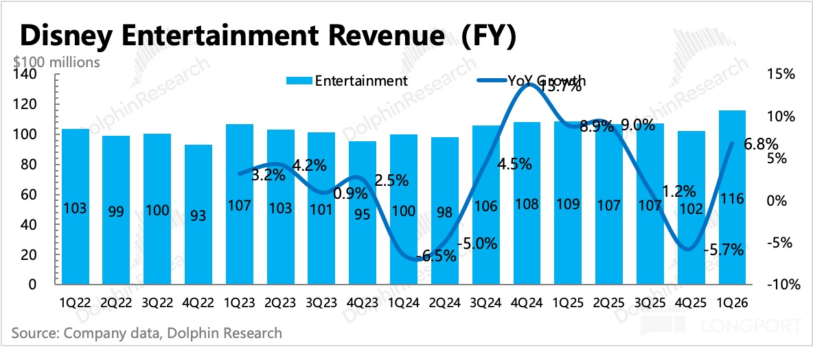 迪士尼一季度业绩再次没有太多惊喜,也没大雷,但市场似乎不太满意,财报后股价跌了 6%。