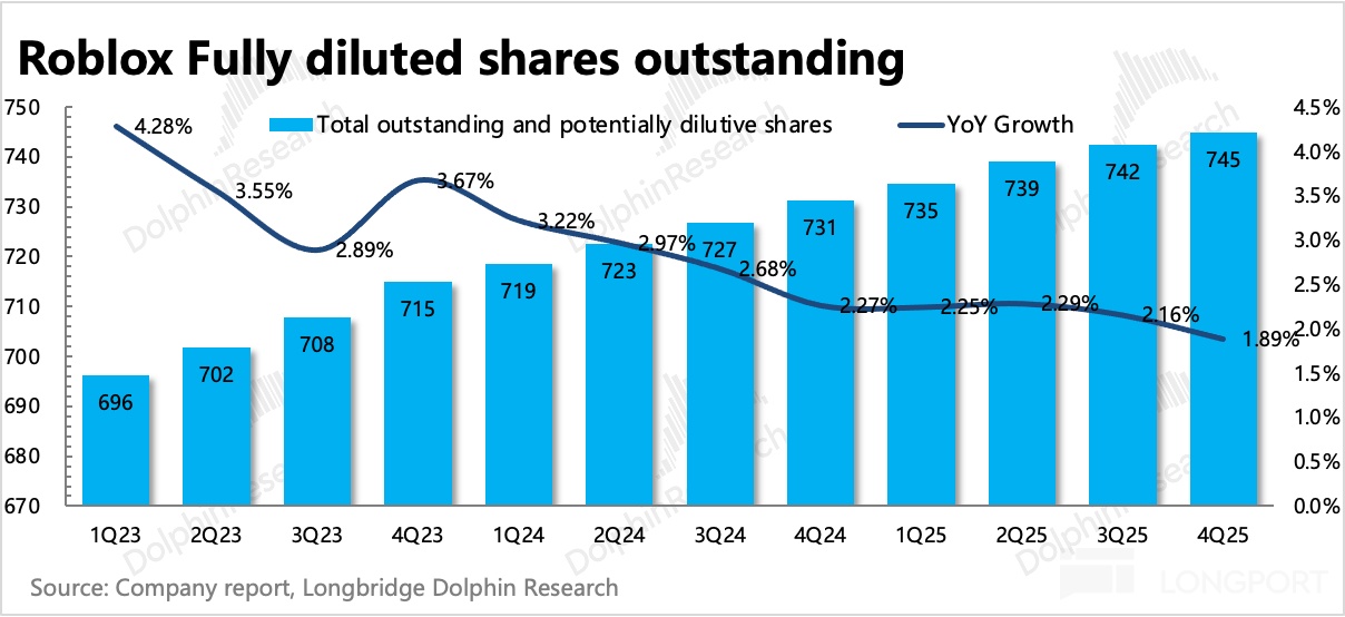 另外,公司在近两年已经大幅度降低 SBC 发放速度,目前对股权稀释的影响按 Q4 最新年化下来不到 2%。