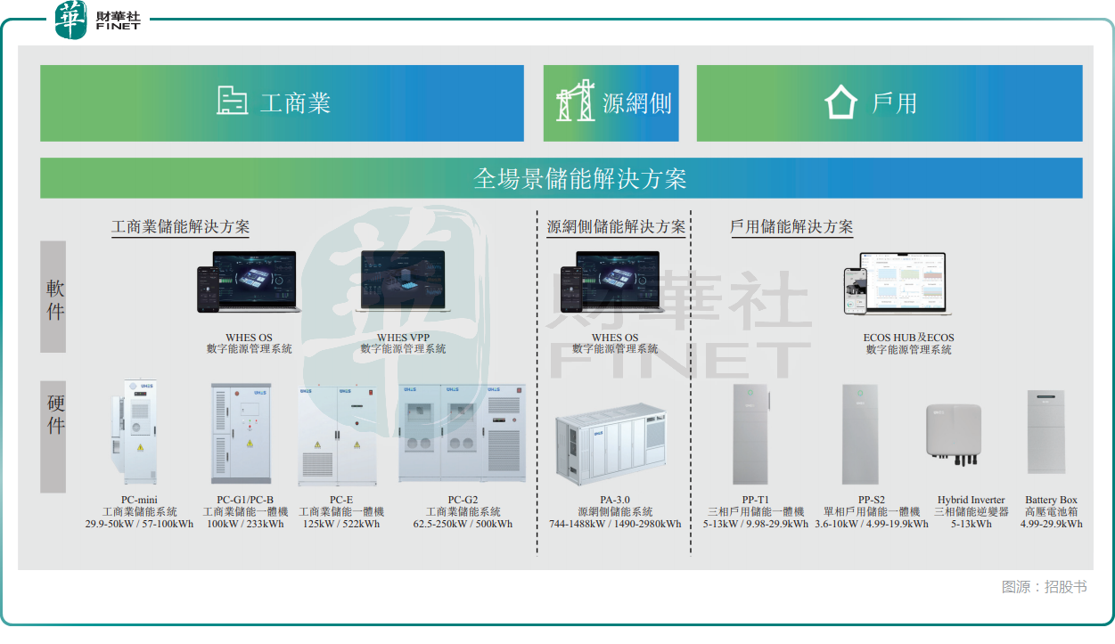 而凭借涵盖硬件及软件的全栈研发能力,为恒智能向客户提供工商业、源网侧及户用储能解决方案,下游应用广泛。其储能解决方案以公司的产品为基础,提供包括硬件、配套的软件平台、售后服务。