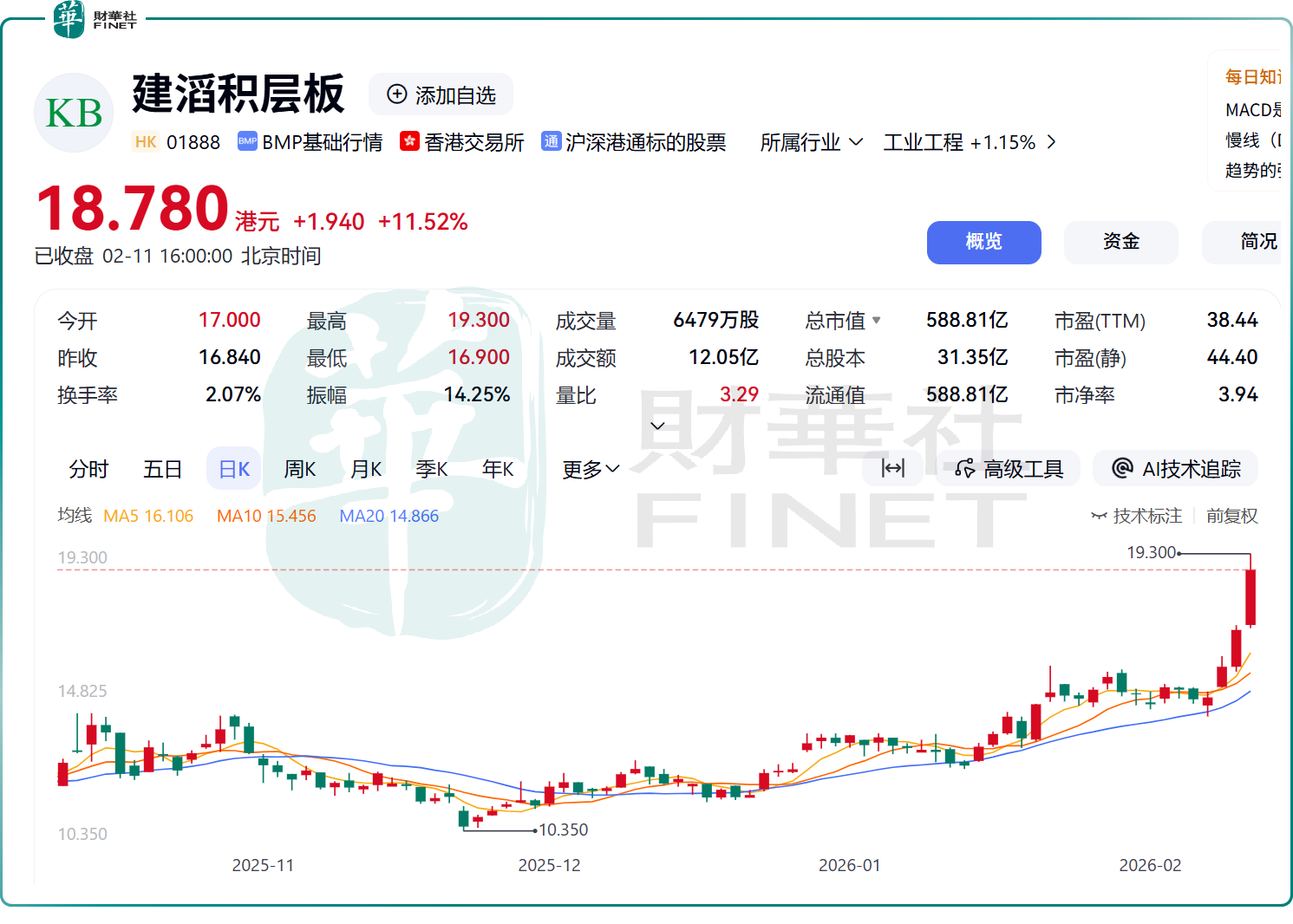 2月11日,港股的建滔系股价大涨,截至收盘,建滔积层板(01888.HK)大涨11.52%,创下历史新高,建滔集团(00148.HK)大涨4.64%,亦创近几年的阶段新高。