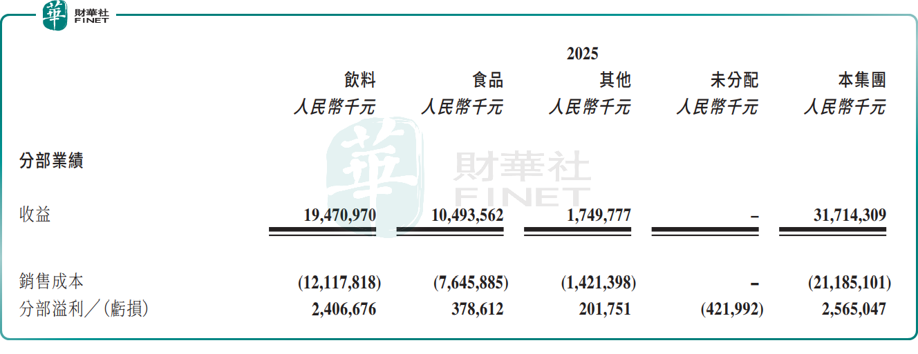 饮料业务板块则稳健托底,期内实现收入194.71亿元,占总营收61.39%,同比增长1.20%,较上年同期有所放缓。
