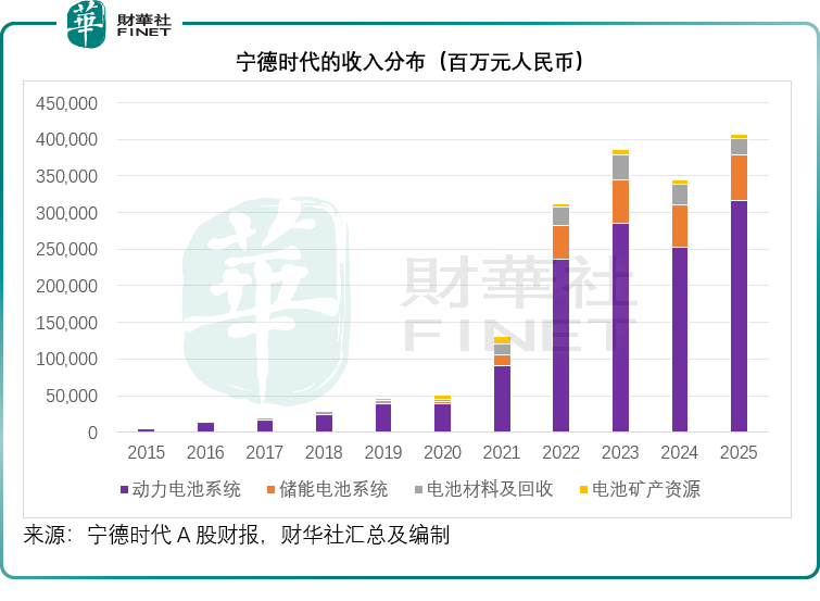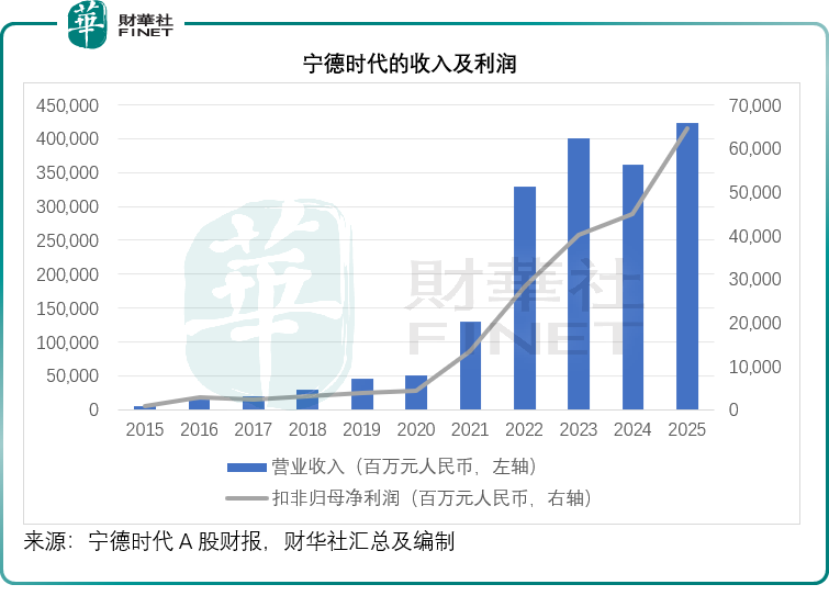 宁德时代(300750.SZ)按中国会计准则编制的财报显示,2025年收入同比增长17.04%,至4,237.02亿元(单位人民币,下同)。
