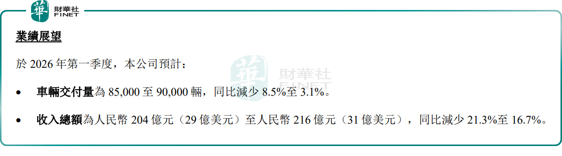 展望2026年一季度,理想汽车给出的业绩指引仍趋于保守,压力或延续。