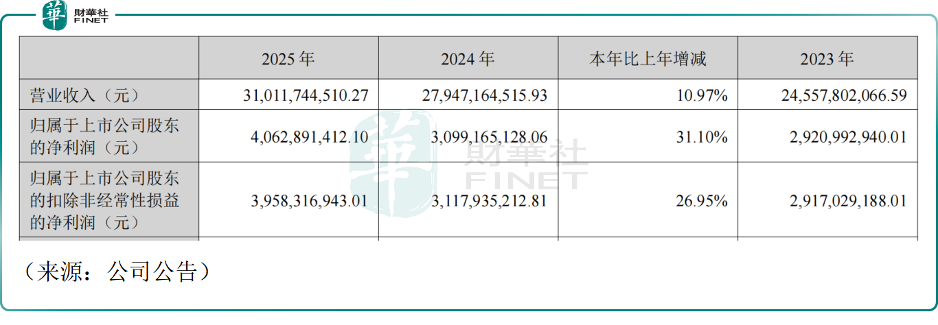 3月23日晚间,三花智控(002050.SZ)(02050.HK)发布2025年年报,全年实现营业收入310.12亿元(人民币),同比增长10.97%,创历史新高;归母净利润40.63亿元,同比大增31.10%,亦创历史新高,且利润增速显著跑赢营收。公司同步推出每10股派2.8元(含税)的分红方案,合计派现约11.76亿元,回馈股东力度加大。
