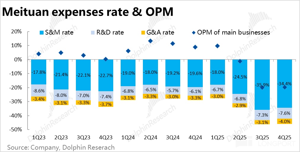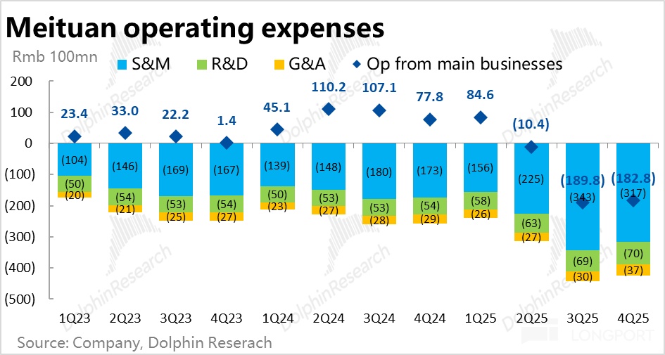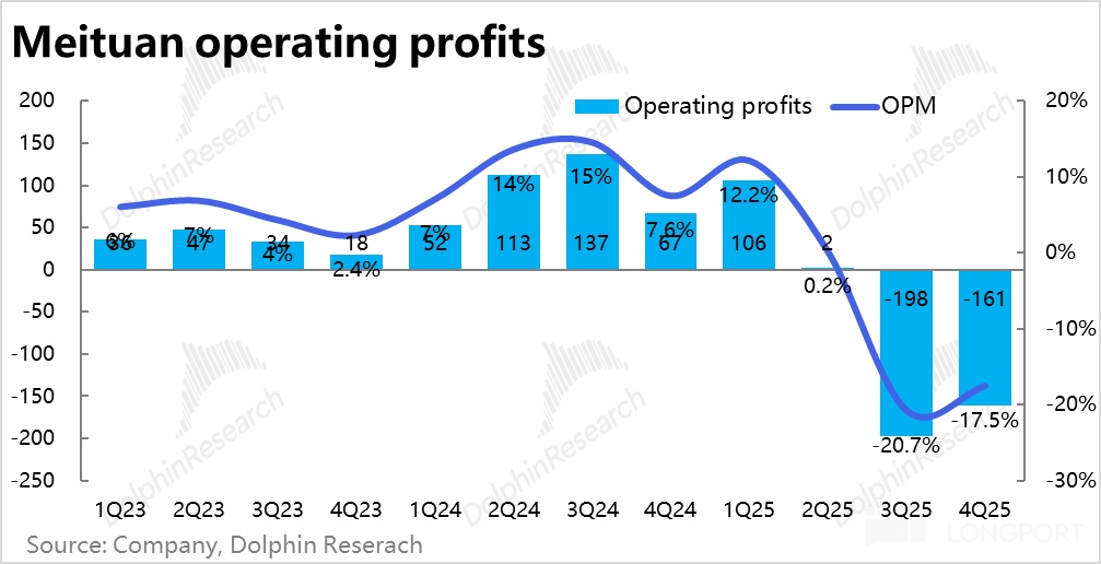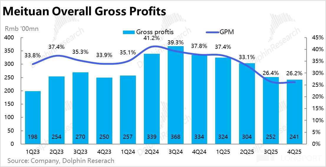 本季毛利率仅为 26.2%,在外卖(配送)补贴影响收窄的情况下,依然环比下滑了约 0.2pct,当然也有冬季的季节性影响。导致毛利润同比下降近 28%,跌幅还是比较高,明显不及市场预期。