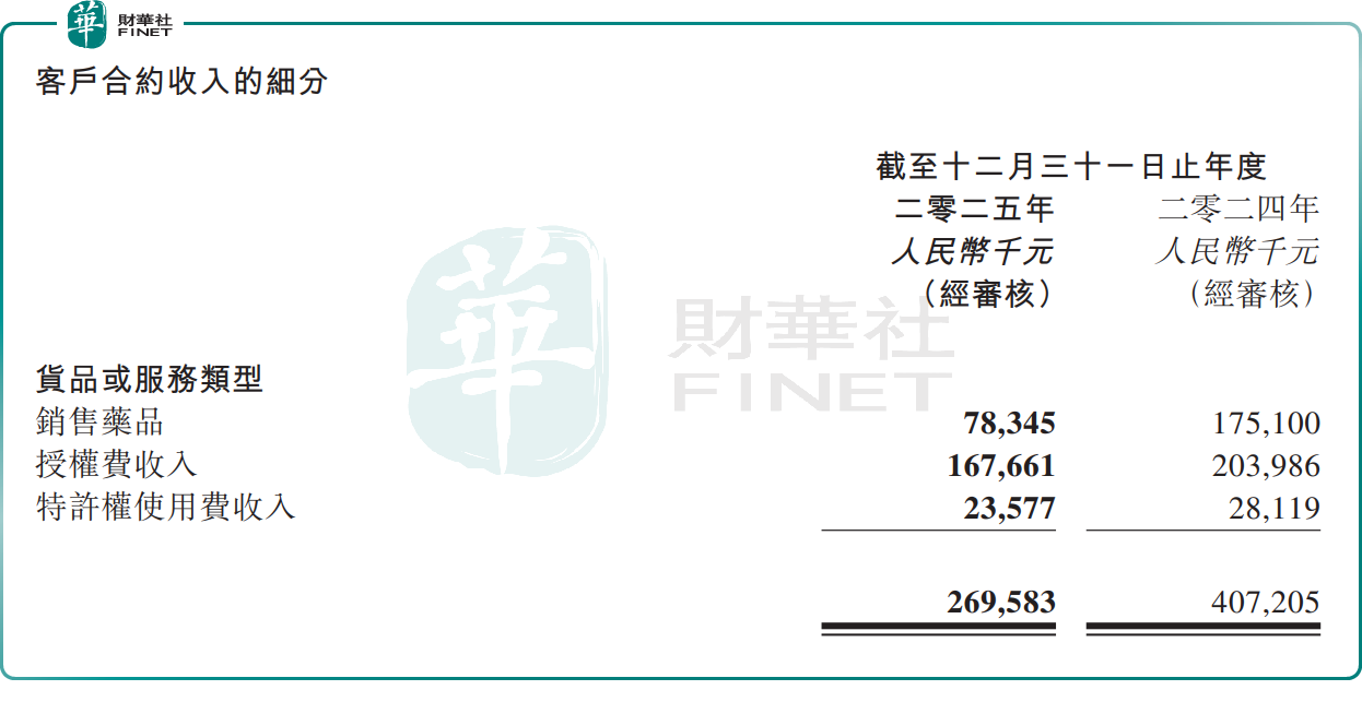分业务看,2025年,公司药品销售(阿伐替尼、普拉替尼及舒格利单抗)收入7834.5万元,同比下滑55.26%,占公司总营收比重为29.06%。