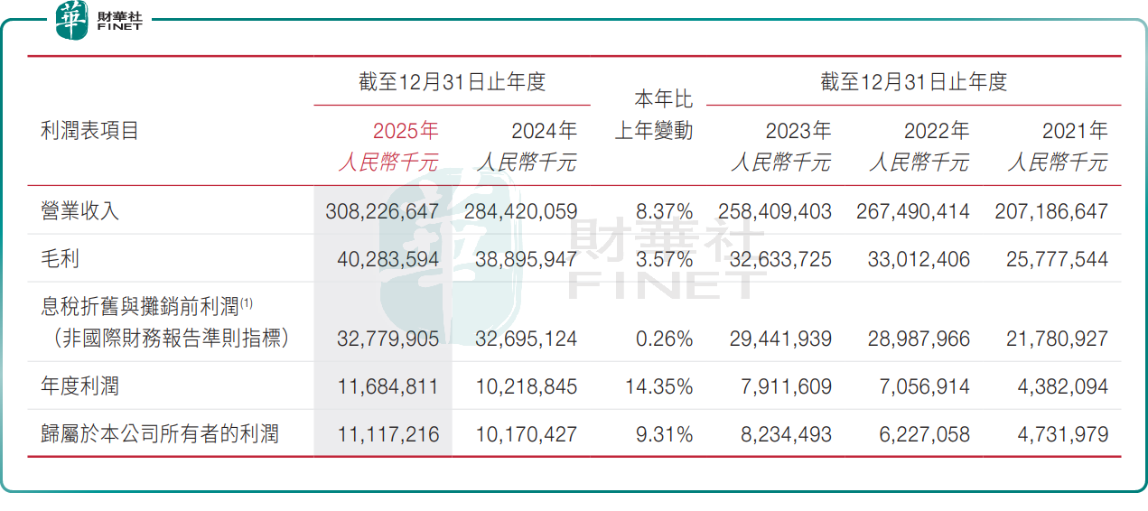 根据顺丰控股于港交所披露的报告,2025年,顺丰控股实现营收3082.27亿元(单位人民币,下同),同比增长8.37%,首次突破3000亿元;毛利402.84亿元,同比增长3.57%;归母净利润达111.17亿元,同比增长9.31%,经营韧性凸显。