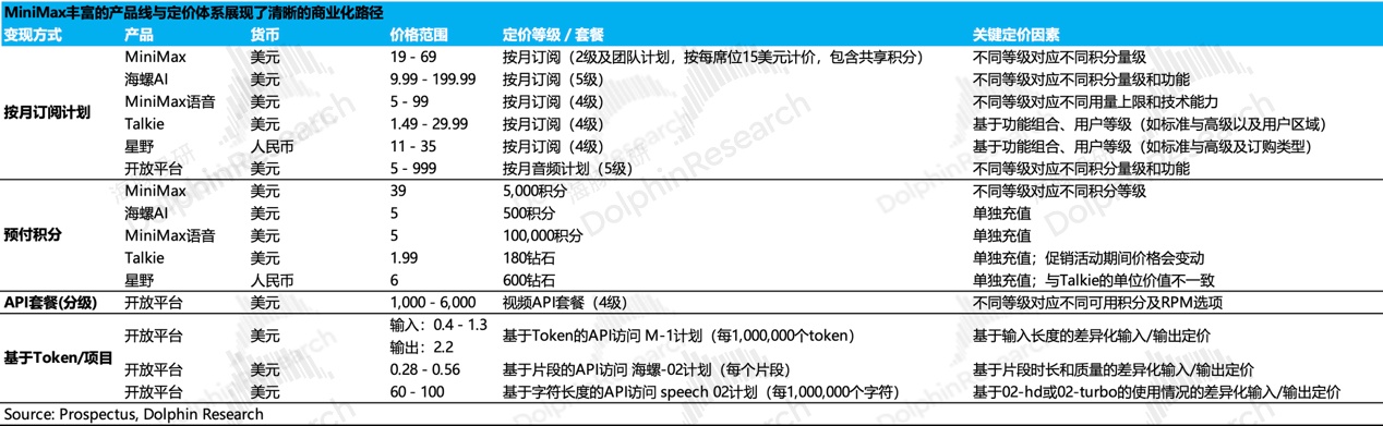 其他模型及产品还有 MiniMax Audio 整体水花不大,创收效果也一般。